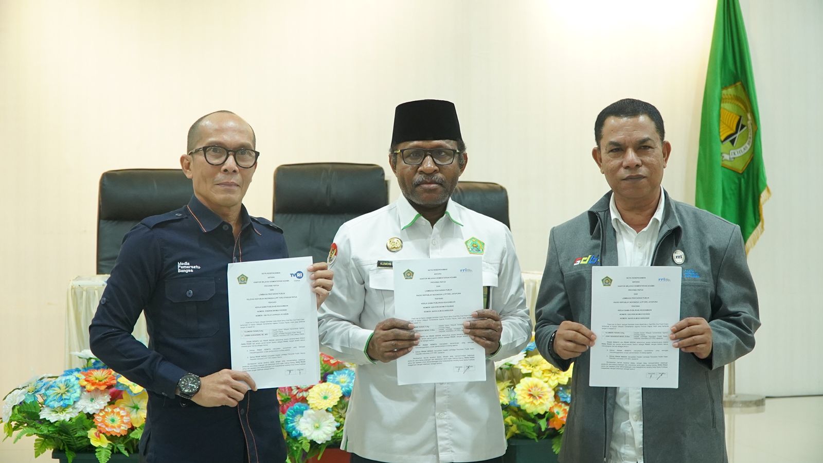 Jayapura (Kemenag) — Kantor Wilayah Kementerian Agama (Kanwil Kemenag) Provinsi Papua menandatangani Nota Kesepahaman atau Memorandum of Understanding (MoU) dengan Lembaga Penyiaran Publik (LPP) Radio Republik Indonesia (RRI) Jayapura dan LPP Televisi Republik Indonesia (TVRI) Papua. Penandatanganan berlangsung di Aula Sasana Krida Bakti Kantor Wilayah Kementerian Agama Provinsi Papua, Senin (9/3/2026).Kerja sama ini bertujuan memperkuat publikasi serta penyiaran pesan-pesan keagamaan yang menyejukkan dan mendorong harmoni di tengah masyarakat Papua.