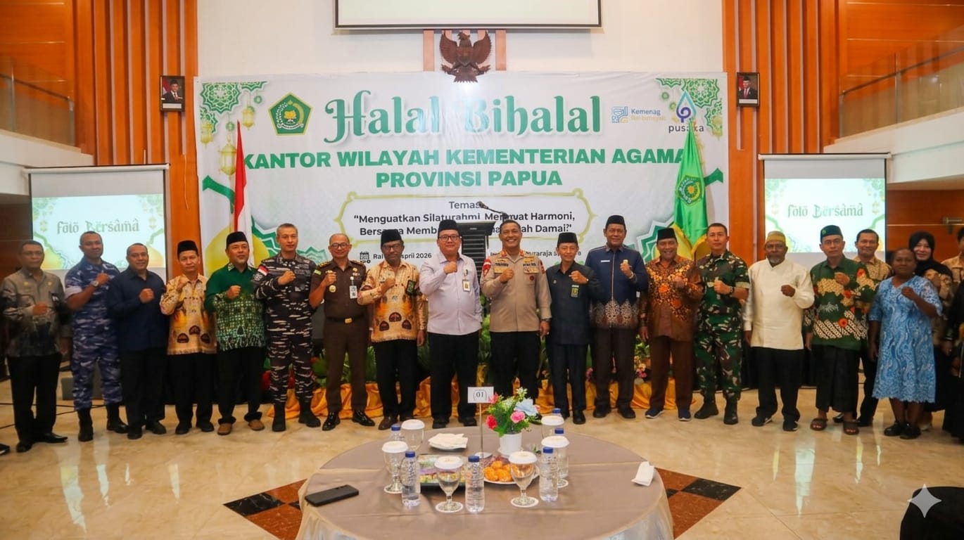 Papua – Asisten Sekretaris Daerah (Asisten Sekda) Provinsi Papua Bidang Perekonomian dan Pembangunan, M.B. Setiyo Wahyudi, mewakili Gubernur Papua dalam kegiatan Halal Bihalal Kantor Wilayah Kementerian Agama (Kanwil Kemenag) Provinsi Papua, mengajak seluruh elemen masyarakat untuk memperkuat silaturahmi dan menjaga harmoni sebagai fondasi pembangunan Papua yang damai. Kegiatan tersebut berlangsung di Ballroom Hotel Horison Kotaraja, Jayapura, Rabu (15/4/2026).
