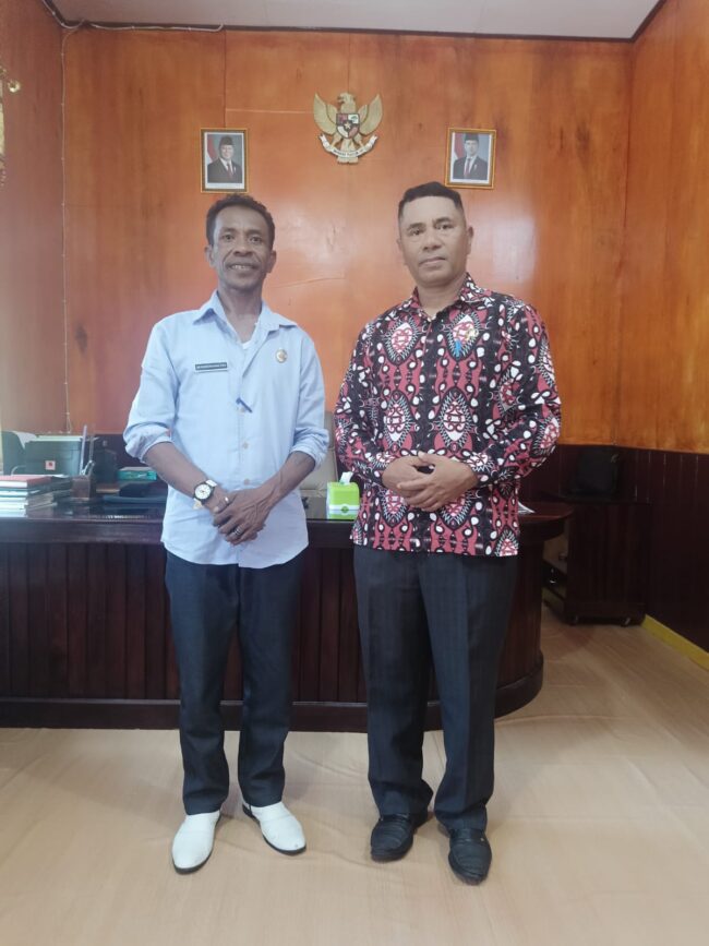 Kemenag , Asmat, – Kepala Badan Kesatuan Bangsa dan Politik ( Kesbangpol) Kabupaten Asmat Drs. Lambertus Leu, melakukan kunjungan perdana ke Kantor Kementerian Agama Kabupaten Asmat usai dilantik dan dikukuhkan kembali dalam jabatan yang sama oleh Bupati Asmat baru-baru ini.