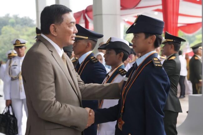 Jakarta – Menteri Pertahanan Republik Indonesia (Menhan RI) Sjafrie Sjamsoeddin menghadiri Upacara Prasetya Perwira (Praspa) Prajurit Karier TNI Program Khusus TA 2026 yang digelar di Markas Besar TNI, Cilangkap, Kamis (29/1/2026).